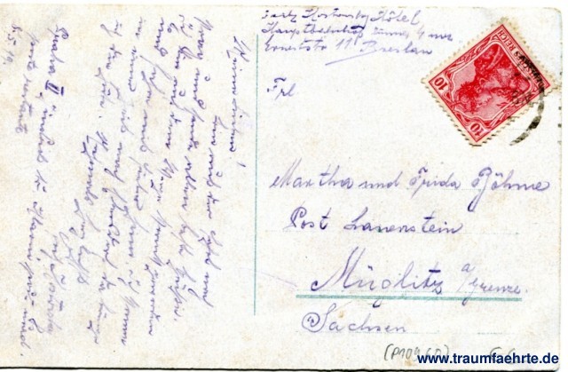 – Details – Jahr: ca. 1915 Status: gelaufen 1919 Beschriftung vorne: Breslau. Blick nach dem Südpark-Restaurant Beschriftung hinten: kein Text Stempel: (... 6N) Hinweis:
