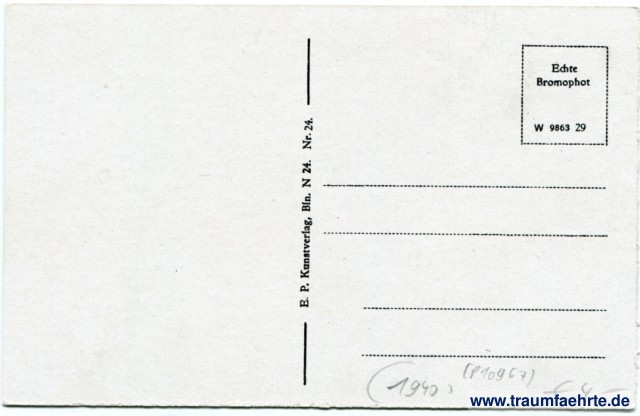 – Details – Year: ca. 1940 Postal state: postally unused Inscription front: Berlin. Reichstag – Siegessäule Inscription back: E. P: Kunstverlag, Bln. N 24. Nr. 24. Echte Bromophot, W 9863, 29 Postmark(s): none Please note: