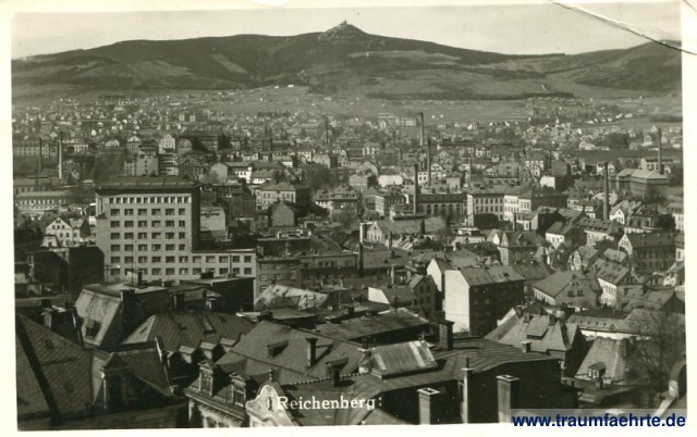 Ansichtskarte Panorama Reichenberg / Liberec in Reichenberg / Liberec [ Permalink ]Schlagworte: Panorama, Schornsteine, Berge, Böhmen