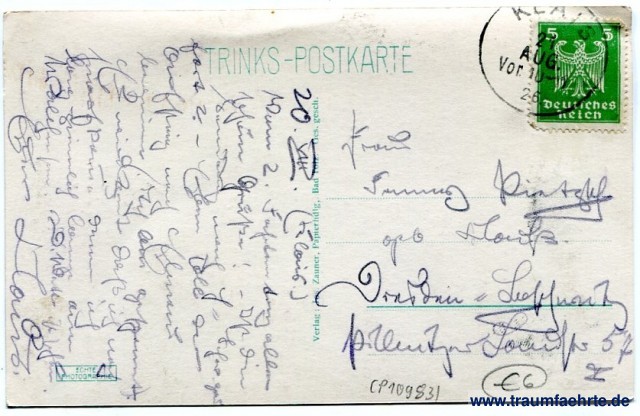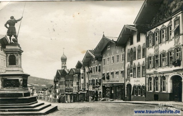– Details – Year: ca. 1925 Postal state: postally used 1926 Inscription front: Bad Tölz,. Oberer Markt. Inscription back: Trinks-Postkarte, Echte Photographie, Trinks & Co., G. m. b. H., Leipzig. Ges. gesch. Postmark(s): Klais, 21 Aug Vor. 10-11 26 Please note: