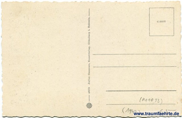 – Details – Year: ca. 1940 Postal state: postally unused Inscription front: Kurgebiet Pönitzer-See. Gr. Pönitzer See, Foto Simonsen Inscription back: 43879 Julius Sumonsen, Kunstverlag, Oldenburg i. Holstein. 414408, JSO Postmark(s): none Please note: