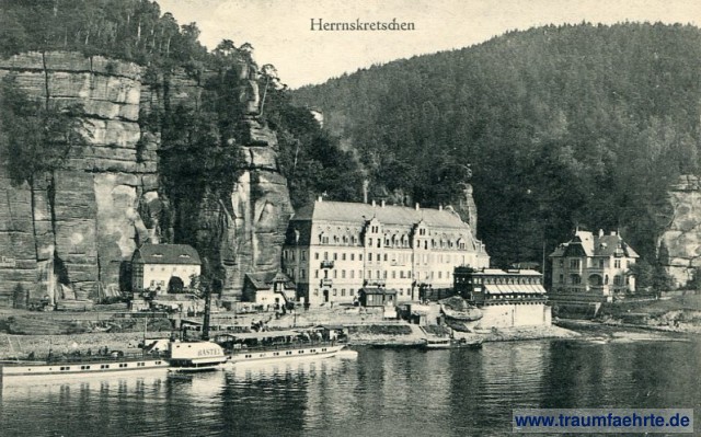 Schlagworte: Elbe, Dampfschiffe, Kamnitz, Berge, Felsen, Wald, Böhmen, Böhmische Schweiz, Sudetenland