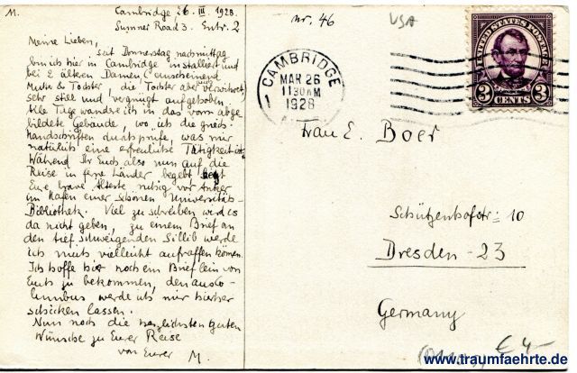 Stempel: Cambridge, MAR 26, 11 30am, 1928, ~