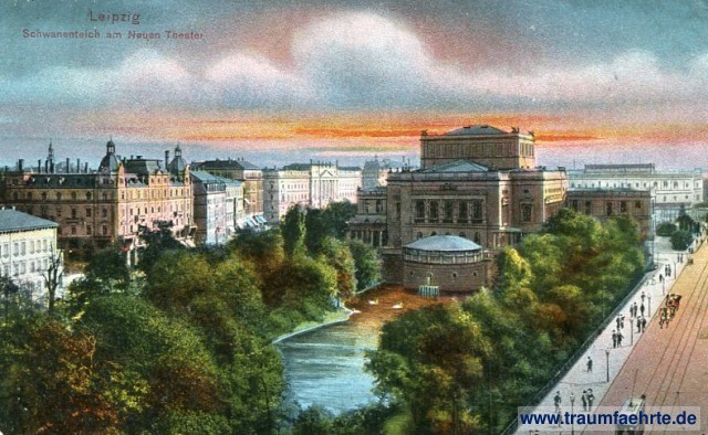 Beschriftung vorne: Leipzig, Schwanenteich am Neuen Theater