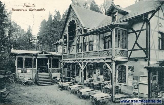 – Details – Year: ca. 1910 Postal state: postally used 1914 Inscription front: Pillnitz, Restaurant Meixmühle, Alte Karten einschließlich... Inscription back: 481 Kunstverlag Carl Döge, Dresden-N. 12 Postmark(s): Pillnitz (Elbe), 27.6.14. 11-12V. Please note: