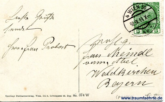 Beschriftung hinten: Sperlings Postkartenverlag, Wien 111/2, Löwengasse 33. Dep. No. 374 W