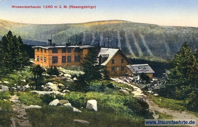 Ansichtskarte Wosseckerbaude / Vosecká bouda in Rochlitz an der Iser / Rokytnice nad Jizerou [ Permalink ]Schlagworte: Bauden, Felsen, Riesengebirge, Böhmen, Berge