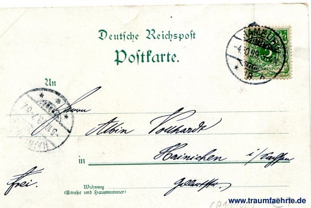 – Details – Jahr: ca. 1895 Status: gelaufen 1899 Beschriftung vorne: Segelschiffhafen. Hamburg, den ..., C. Worzedialek, Hamburg VII No. 8 Beschriftung hinten: Deutsche Reichspost, Postkarte. An ... in ... Wohnung (Straße und Hausnummer) ... Stempel: Hamburg, * 18 b, -4.10.99 3-4N; Hainichen, * * *, -5.10.99.7-8V. Hinweis: