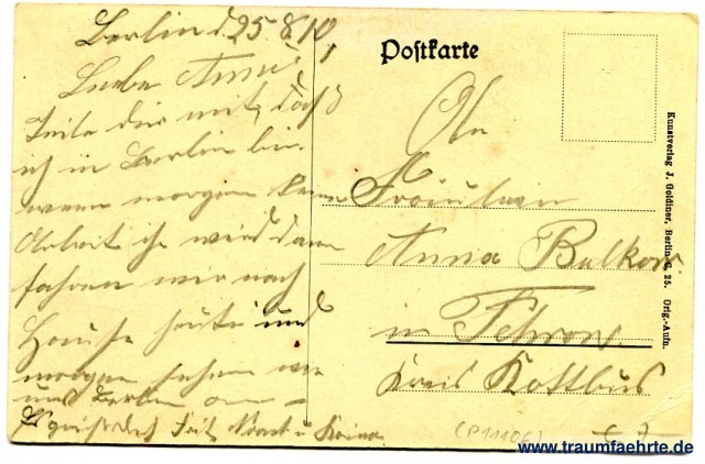 Inscription back: Postkarte, Kunstverlag J. Goldiner, Berlin C. 25. Orig.-Aufn.