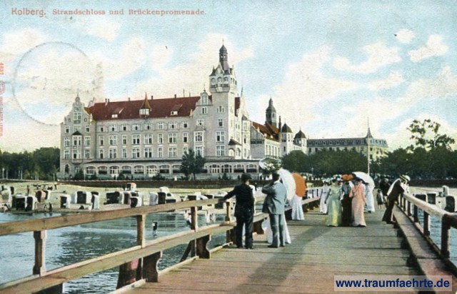 Ansichtskarte Seebrücke & Strandschloss (zerstört) in Kolberg / Colberg / Kołobrzeg [ Permalink ]Kategorie: Seebäder