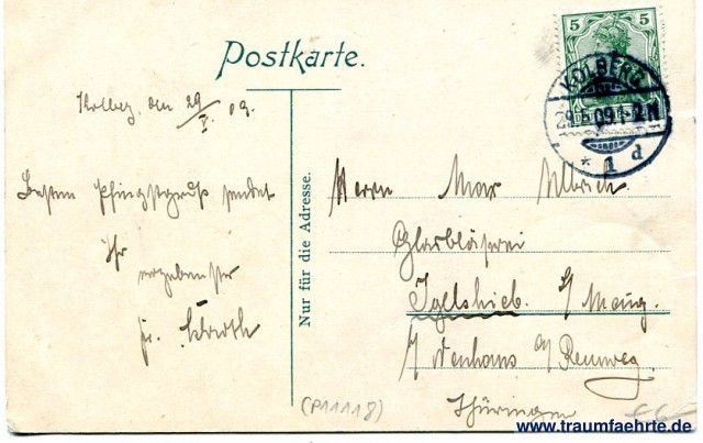 – Details – Jahr: ca. 1905 Status: gelaufen 1909 Beschriftung vorne: Kolberg. Strandschloss und Brückenpromenade. 4837 Autochrom, Louis Glaser, Leipzig. Beschriftung hinten: Postkarte. Nur für die Adresse. Stempel: Kolberg, * 1 d, 29.5.09.1-2N Hinweis: