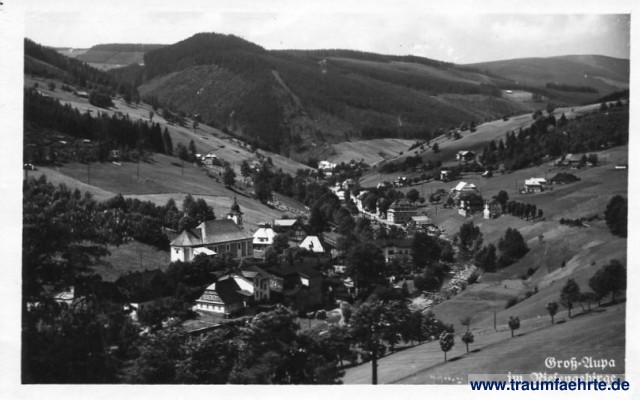 – Details – Year: ca. 1940 Postal state: postally used 1942 Inscription front: Groß-Aupa im Riesengebirge Inscription back: no text Postmark(s): Petzer (Riesengeb.), d, 29.6.42 (...) Please note: