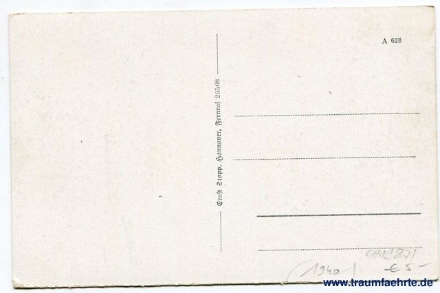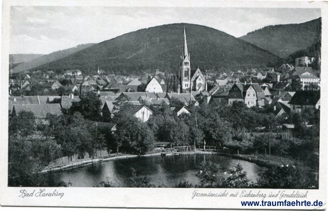 – Details – Year: ca. 1940 Postal state: postally unused Inscription front: Bad Harzburg, Gesamtansicht mit Eichenberg und Gondelteich Inscription back: Ernst Stopp, Hannover, Fernruf 26508, A 628 Postmark(s): none Please note: