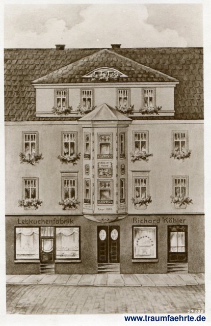 Ansichtskarte Lebkuchenfabrik Richard Köhler / Köhler-Haus in Pulsnitz / Polcnica (Stadt) [ Permalink ]