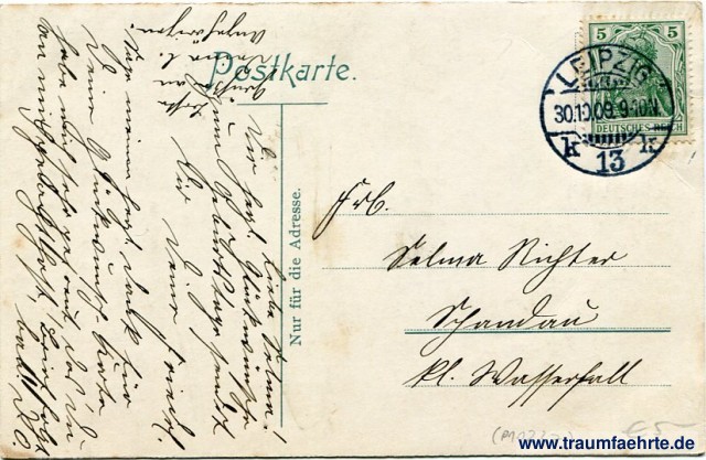 – Details – Jahr: ca. 1905 Status: gelaufen 1909 Beschriftung vorne: Leipzig. Reichsgericht. Beschriftung hinten: Postkarte. Nur für die Adresse. Stempel: Leipzig, k 13 k, 30.10.09.9-10N. Hinweis: