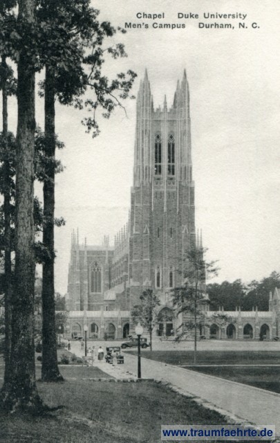 – Details – Jahr: unbekannt Status: ungelaufen Beschriftung vorne: Chapel, Duke University, Men's Campus, Durham, N. C. Beschriftung hinten: Post Card, Published by Washington Duke Cigar Stand, Post Card of Quality. – The Albertype Co., Brooklyn, N. Y. Stempel: keine Hinweis: