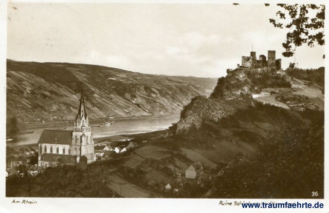 Inscription front: Am Rhein. Ruine Schönburg bei Oberwesel, 36