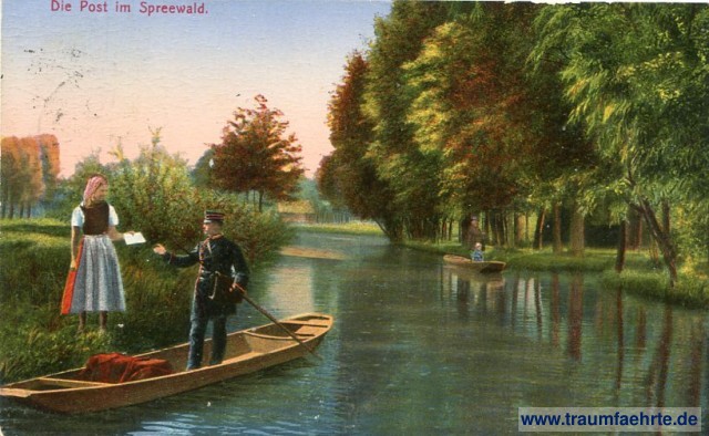 Ansichtskarte Spreewald (allgemein) in Lübbenau/Spreewald / Lubnjow (Gemeinde) [ Permalink ]Schlagworte: Kanäle, Post, Uniformen, Boote, Spreewälder Post