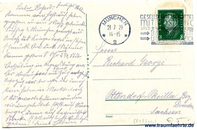 – Details – Year: ca. 1925 Postal state: postally used 1929 Inscription front: München. Marienplatz. Inscription back: P.M. – F.J.H. – M. 25683 Postmark(s): München, * 2 *, 21 7 29 14-15; Gesellschaftsfahrten mit Postauto sind billig, bequem und genussreich Please note: