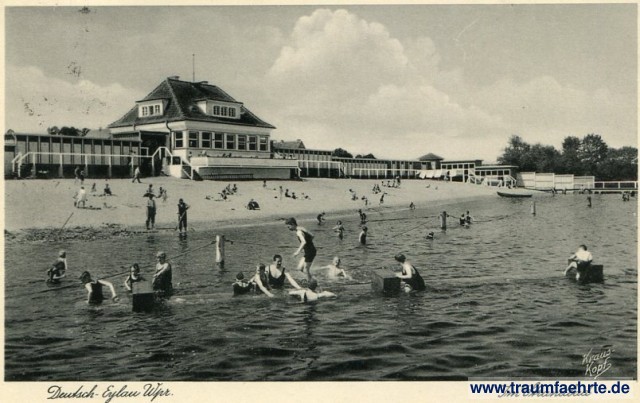 – Details – Year: ca. 1935 Postal state: postally used 1940 Inscription front: Deutsch-Eylau Wpr. Im Strandbad, Kraus-Kopf Inscription back: Nachdruck verboten, Nr. 525, Photographie und Verlag Fritz Kreuskopf, Königsberg Pr., Steindamm 64 Postmark(s): Deutsch Eylau, [...], 17.4.40-21 Please note: