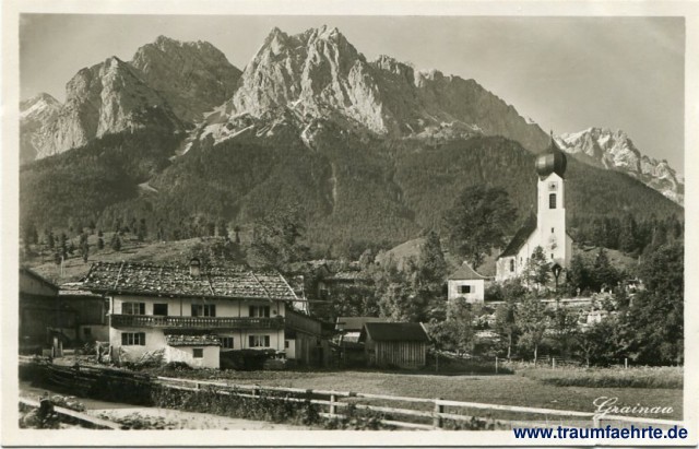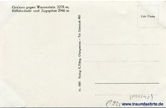 Beschriftung hinten: Grainau gegen Waxenstein 2278 m, Riffelwände und Zugspitze 2966 m, Echt Photo, Nr. 4887 Verlag E. Tiling, Obergrainau – Tel. Garmisch 802