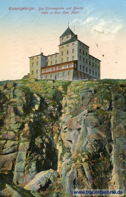 Ansichtskarte Schneegrubenhaus / Sněžné jámy / Śnieżne Kotły in Spindlermühle / Špindlerův Mlýn (Stadt) [ Permalink ]Schlagworte: Riesengebirge, Schlesien, Sudetenland, Gebirge, Felsen, Bauden