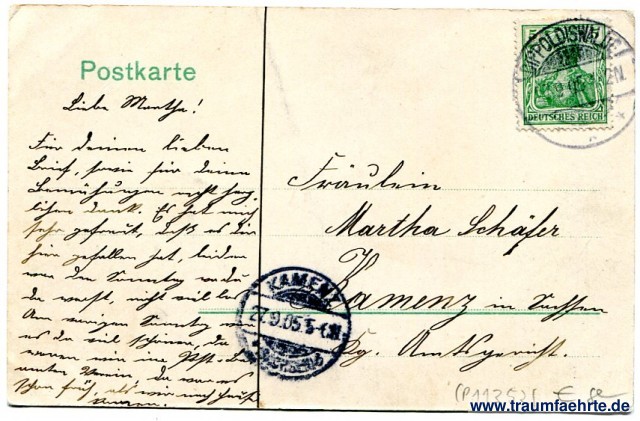 – Details – Jahr: ca. 1900 Status: gelaufen 1905 Beschriftung vorne: Dippolsdiswalde. 3210 Stück & Sohn, Meissen. Beschriftung hinten: Postkarte Stempel: Dippoldiswalde, [...] *, 27.9.05.1-2N; Kamenz (Sachsen), 27.9.05.5-6N Hinweis:
