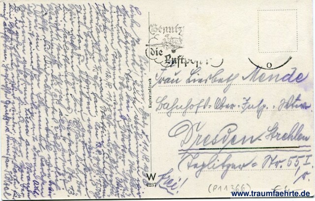 Zustand: obere Kante minimal beschädigt, Ecken minimal bestoßen, insgesamt schönes Exemplar, Briefmarke entfernt, Rückseite datiert (11.8.1936)