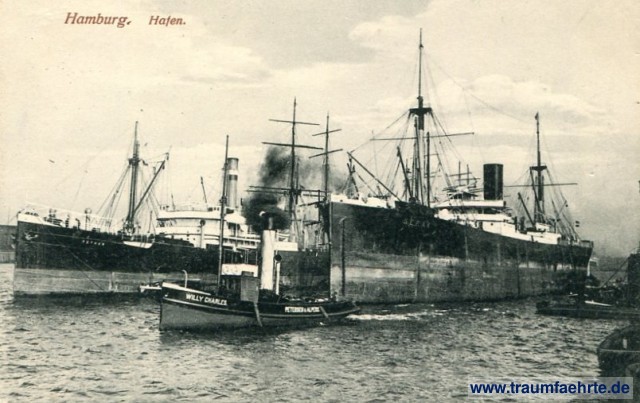 Beschriftung vorne: Hamburg. Hafen. Tetuan, Willy Charles. Petersen & Alpers. Serak