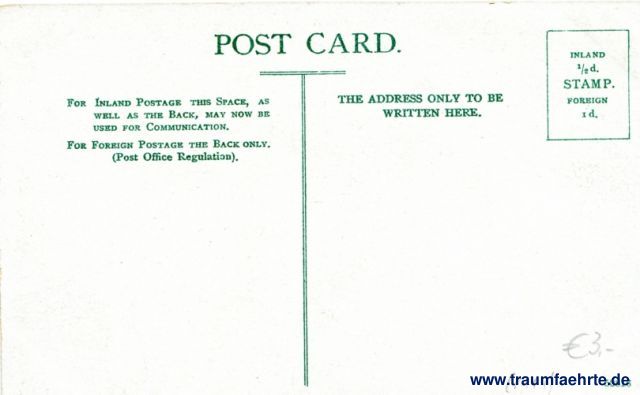 – Details – Jahr: vor 1945 Status: ungelaufen Beschriftung vorne: Horse Guards Whitehall London . Beschriftung hinten: Post Card. For Inland Postage this Space, as well as the Back, may now be used for Communication. For Foreign Postage the Back only. (Post Office Regulation). The Address only to be written on this here. Inland ½ d. Stamp. Foreign 1 d. 52816 Stempel: keine Hinweis: