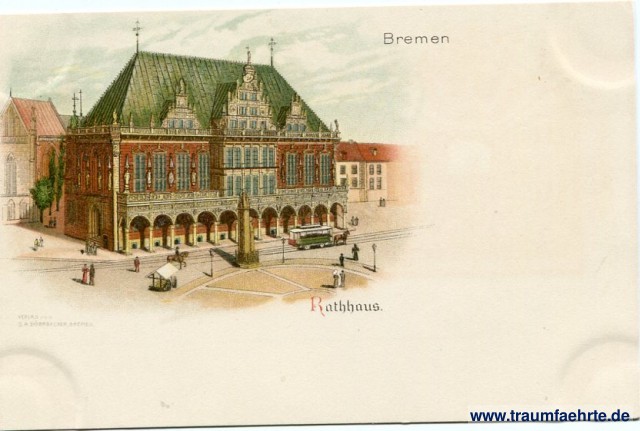 – Details – Jahr: ca. 1900 Status: ungelaufen Beschriftung vorne: Bremen, Rathhaus. Verlag von G. A. Dörrbecker, Bremen. Beschriftung hinten: Deutsche Reichspost, Postkarte. An ... in ... Zum Aufkleben der Marke. Stempel: keine Hinweis: