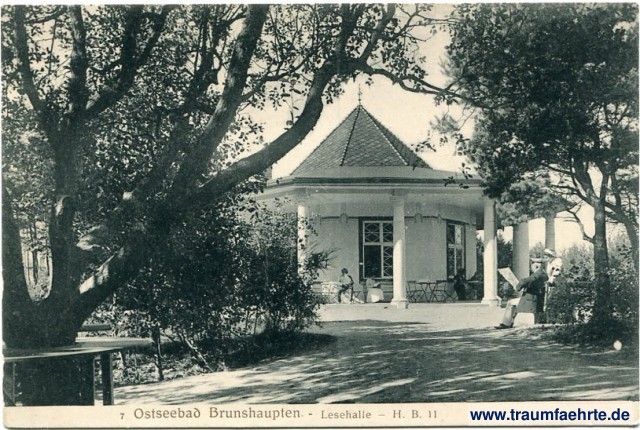 – Details – Jahr: ca. 1910 Status: ungelaufen Beschriftung vorne: 7 Ostseebad Brunshaupten – Lesehalle – H. B. [11] Beschriftung hinten: Verlag H. Bartelmann, Brunshaupten Stempel: keine Hinweis: