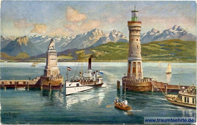 Schlagworte: Bodensee, Seen, Häfen, Boote, Schiffe, Dampfschiffe, Leuchttürme, Berge, Schnee, Statuen