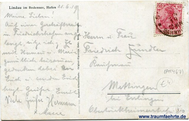 Beschriftung hinten: Lindau im Bodensee, Hafen, Aquarell-Künstlerkarte. Original-Eigentum Gebr. Metz, Thüringen.