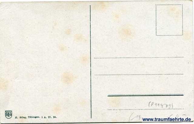 – Details – Jahr: ca. 1920 Status: ungelaufen Beschriftung vorne: Schloss Monrepos bei Ludwigsburg. Beschriftung hinten: H T St H. Sting, Tübingen. 1 A. 27. 24. Stempel: keine Hinweis: