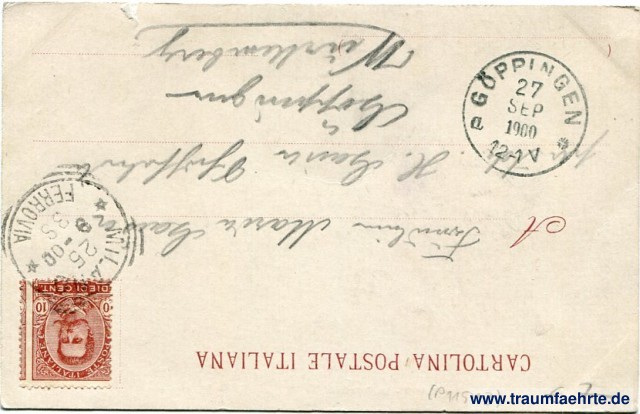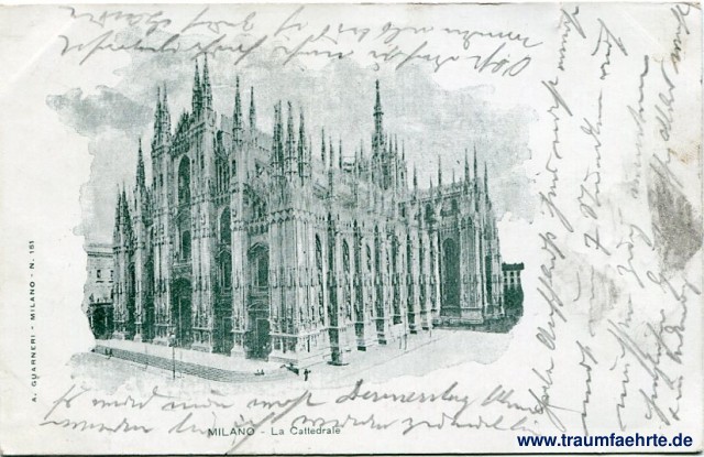 – Details – Jahr: ca. 1895 Status: gelaufen 1900 Beschriftung vorne: Milano – La Cattedrale, A. Guarneri – Milano – Nr. 151 Beschriftung hinten: Cartolina Postale Italiana, A ... (...) Stempel: Milano, Ferrovia, 25 9 – 00 38 Hinweis: