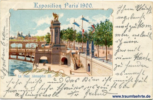 Beschriftung vorne: Exposition Paris 1900. Le Pont Alexandre III. Importé: C. S. à F. No. 111.