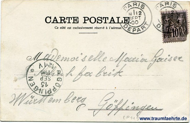Stempel: 2x Paris Depart, N I I 2 Sept 00; Göppingen, 13 Sep 1900, 12-1V