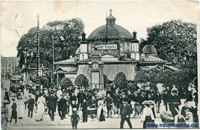 – Details – Jahr: ca. 1905 Status: gelaufen 1906 Beschriftung vorne: Café Kröpcke, Verlag: G. Löwenstein, Limmer – Hannover. Beschriftung hinten: Postkarte, Café Kröpcke, Hannover. Wilhelm Kröpcke Stempel: Hannover, * 1 x, 27.9.06. 1-2V. Hinweis: