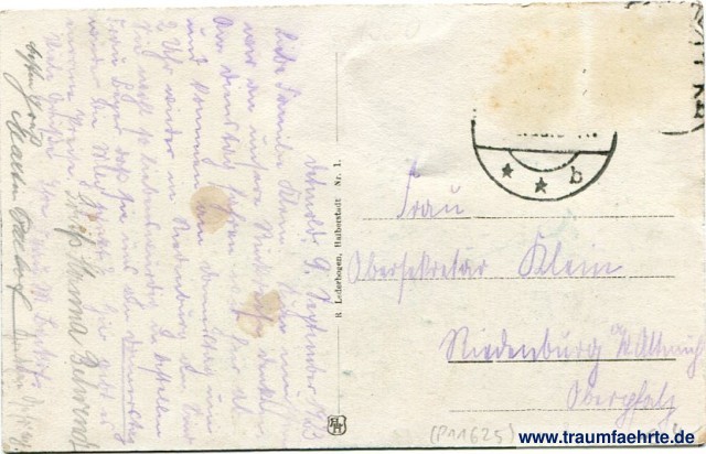 – Details – Jahr: ca. 1920 Status: gelaufen 1923, Briefmarke entfernt Beschriftung vorne: Detmold. Fürstliches Schloß. Beschriftung hinten: R. Lederbogen, Halberstadt, Nr. 1.RL H Stempel: [...], * * b, [...] Hinweis: