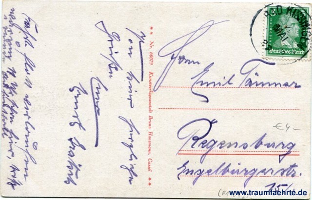 – Details – Year: ca. 1925 Postal state: postally used 1927 Inscription front: Bad Kissingen. Konversationshaus und Kurgarten Inscription back: ** Nr. 60079 Kunstverlagsanstalt Bruno Hansmann, Cassel ** Postmark(s): Bad Kissingen, 4 Mai 27, [...] Please note: