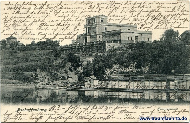 – Details – Jahr: ca. 1900 Status: gelaufen 1902(?) Beschriftung vorne: Aschaffenburg, Pompejanum Beschriftung hinten: Postkarte, Verlag von H. Kamnitzer & Co. Stempel: Aschaffenburg, [...], 17 Dez. 0[2]; (128) Hinweis: