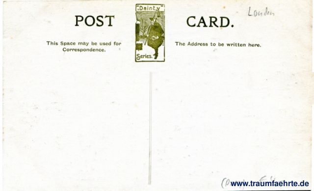 – Details – Year: ca. 1900 Postal state: postally unused Inscription front: Canbury Gardens, Kingston, E.T.W.D. Inscription back: Post Card. Dainty Series. This Space may be used for Correspondence. The Address to be written here. Postmark(s): none Please note: