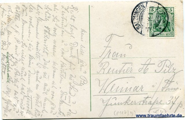 – Details – Jahr: ca. 1910 Status: gelaufen 1911 Beschriftung vorne: Soolbad Salzungen. Gradirhaus. Beschriftung hinten: Ottmar Zieher, München. Stempel: Salzungen * * b, -9.8.11. 3-4N. Hinweis: