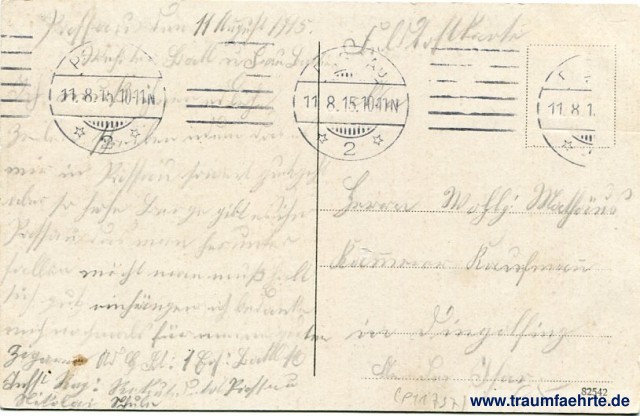 – Details – Year: ca. 1910 Postal state: postally used without stamp (military mail), 1915 Inscription front: Passau, Donaupartie Inscription back: 82542 Postmark(s): 3x Passau, * 2 *, 11.8.15.10-11N; --- Please note: