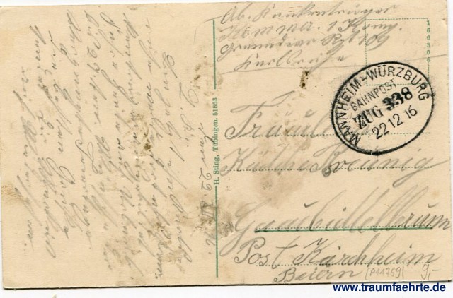 Stempel: Mannheim-Würzburg, Bahnpost, Zug 338, 22 12 16