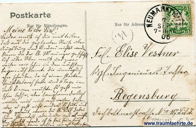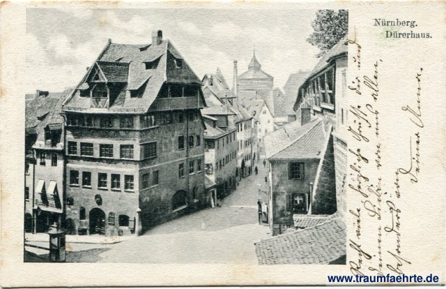 – Details – Year: ca. 1905 Postal state: postally used 1906 Inscription front: Nürnberg. Dürerhaus. Inscription back: Postkarte, Nur für Mitteilungen. Nur für Adresse. Postmark(s): Neumarkt [I. Offz.], 7 Sep 06, 7-8 Nm. Please note:
