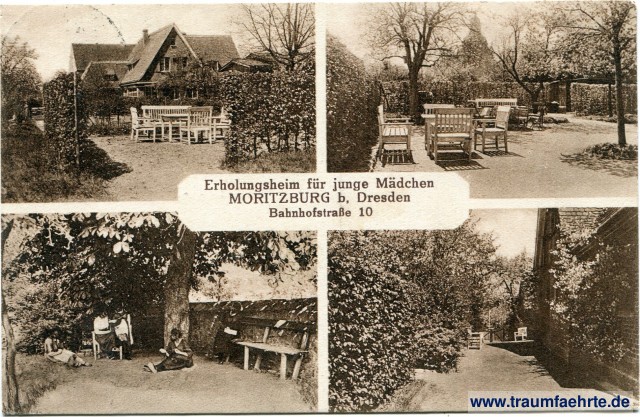 Beschriftung vorne: Erholungsheim für junge Mädchen, Moritzburg b. Dresden, Bahnhofstraße 10