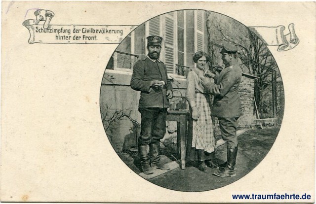 Beschriftung vorne: Schutzimpfung der Civilbevölkerung hinter der Front.