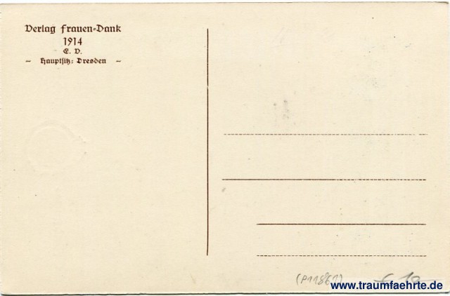 Beschriftung hinten: Verlag Frauen-Dank, 1914, E. D. – Hauptsitz: Dresden -